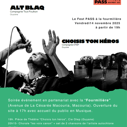 19h. Pièce de Théâtre “Choisis ton héros”, Cie Otep (Guyane) Katia, une jeune entrepreneuse, rentre chez elle après le travail. Sourire aux lèvres, son cœur est bercé par une heureuse nouvelle. Ce qui s’apprêtait à être une soirée apaisante sera, pour elle, le déclin vers un chaos intime et la remise en question de ses valeurs…Tout comme son titre, la structure dramatique de la pièce est inspirée des livres « Dont vous êtes le héros ». La pièce « Choisis ton héros » aborde la thématique des violences conjugales en interpellant la majorité, soit les potentiels témoins de violences conjugales. « Choisis ton héros » est une œuvre interactive où nous invitons le public à voter en lui présentant différents tableaux et différentes perspectives.